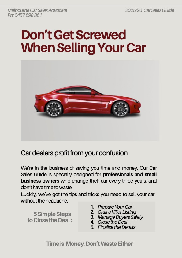 Our Car Sales Guide is specially designed for professionals and small business owners who need to sell their cars every three years and don’t have time to waste.